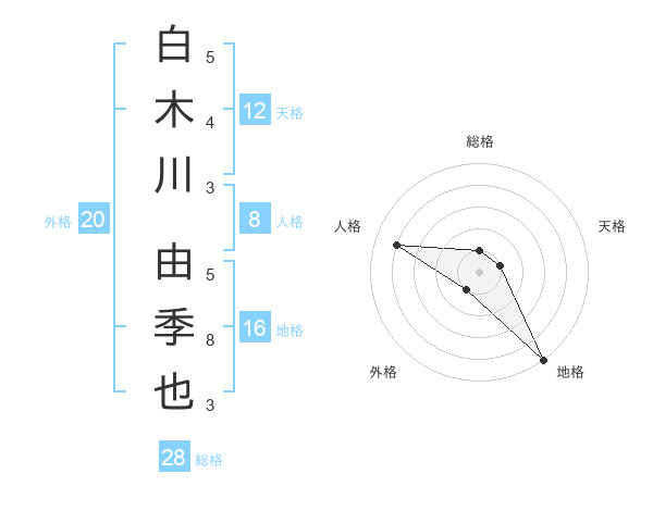 白木川 由季也さんの総格は28画の1点!