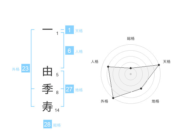 一 由季寿さんの総格は28画の1点!