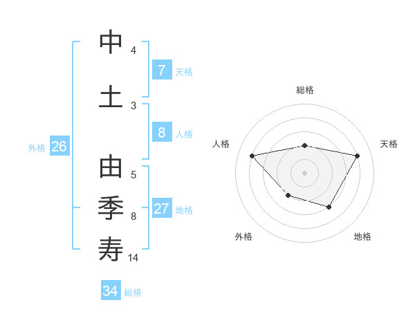 中土 由季寿さんを姓名の画数から五運を鑑定