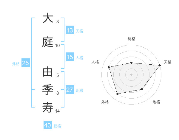 大庭 由季寿さんの天格は13画の5点!