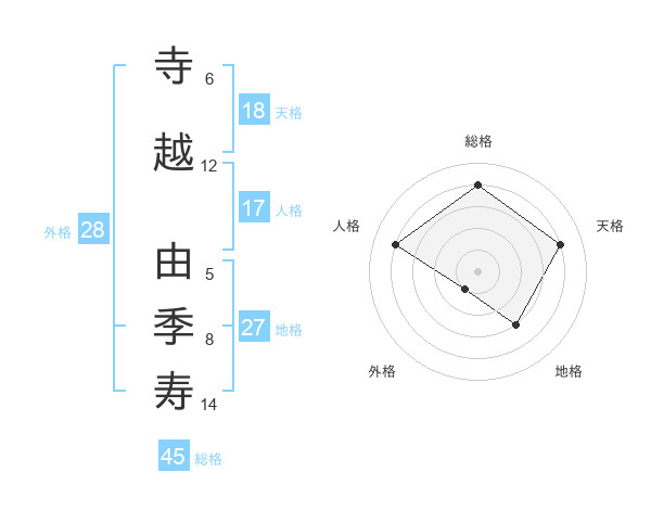 寺越 由季寿さんを姓名の画数から五運を鑑定