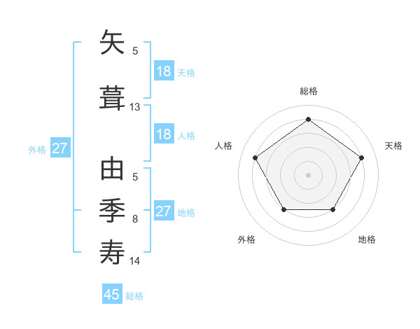 矢葺 由季寿さんの総格は45画の4点!