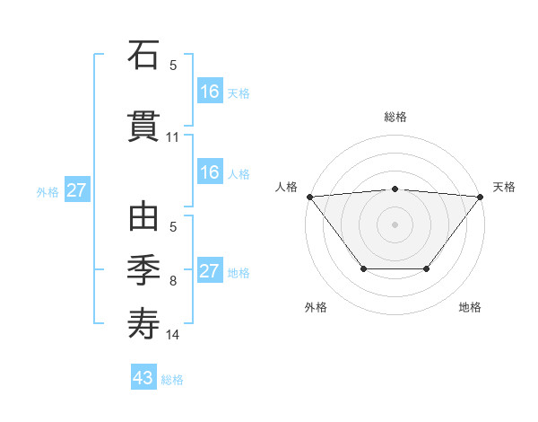 石貫 由季寿さんの総格は43画の2点!