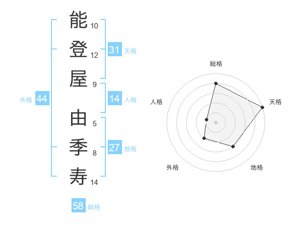 能登屋 由季寿さんを姓名の画数から五運を鑑定