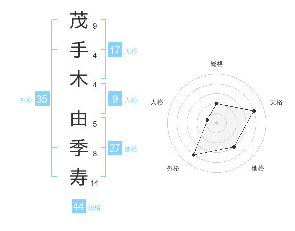 茂手木 由季寿さんを姓名の画数から五運を鑑定