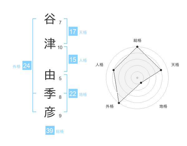 谷津 由季彦さんを姓名の画数から五運を鑑定
