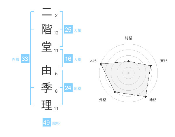 二階堂 由季理さんを姓名の画数から五運を鑑定