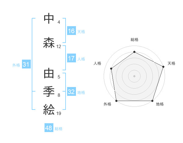 中森 由季絵さんを姓名の画数から五運を鑑定