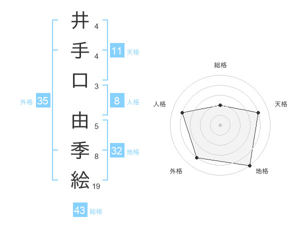 井手口 由季絵さんの総格は43画の2点!