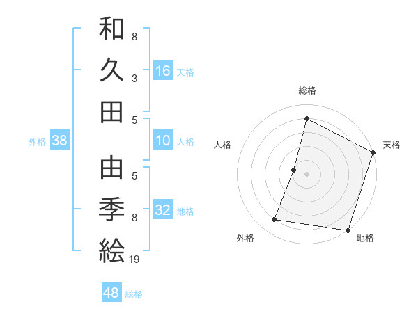 和久田 由季絵さんを姓名の画数から五運を鑑定