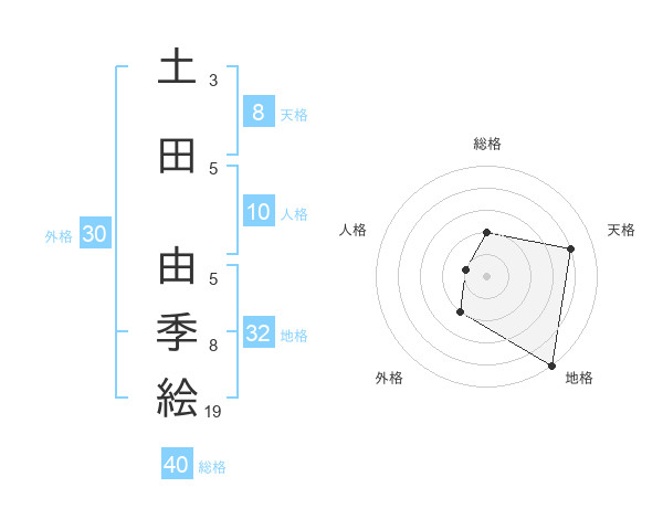 土田 由季絵さんを姓名の画数から五運を鑑定