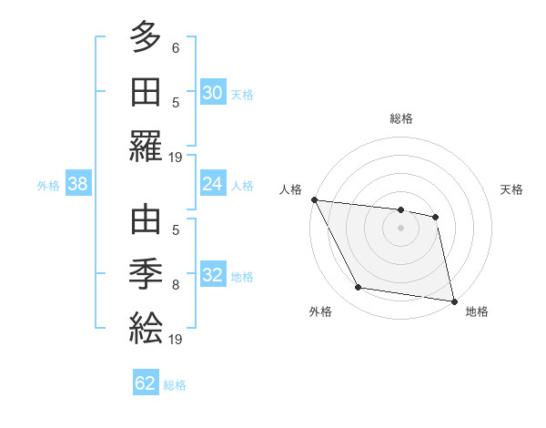 多田羅 由季絵さんを姓名の画数から五運を鑑定