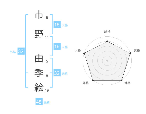 市野 由季絵さんを姓名の画数から五運を鑑定
