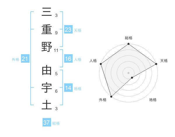 三重野 由宇土さんの総格は37画の5点!
