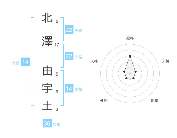 北澤 由宇土さんを姓名の画数から五運を鑑定