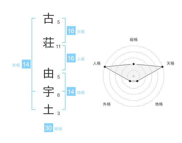 古荘 由宇土さんを姓名の画数から五運を鑑定