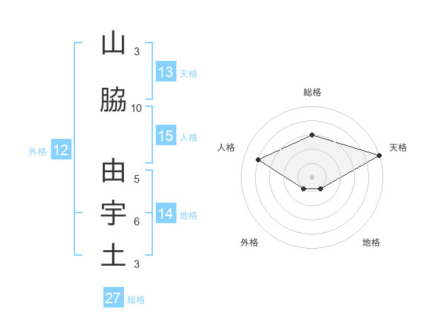 山脇 由宇土さんを姓名の画数から五運を鑑定