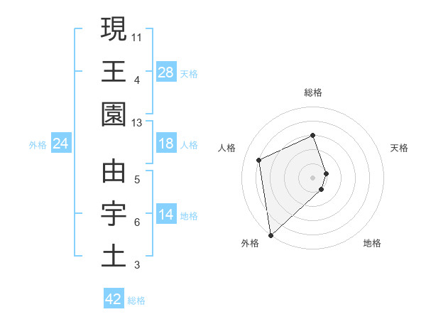 現王園 由宇土さんを姓名の画数から五運を鑑定