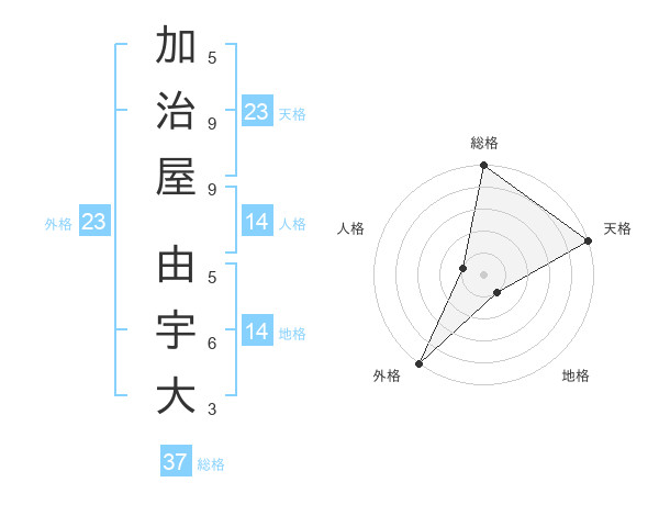 加治屋 由宇大さんを姓名の画数から五運を鑑定