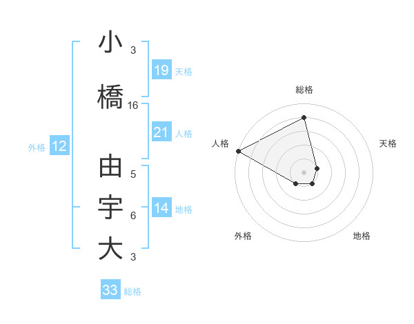 小橋 由宇大さんを姓名の画数から五運を鑑定