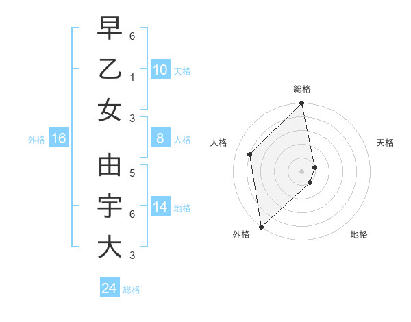 早乙女 由宇大さんを姓名の画数から五運を鑑定
