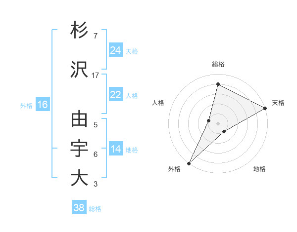 杉沢 由宇大さんの総格は38画の4点!