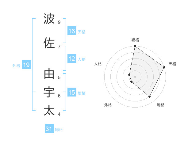 波佐 由宇太さんの天格は16画の5点!