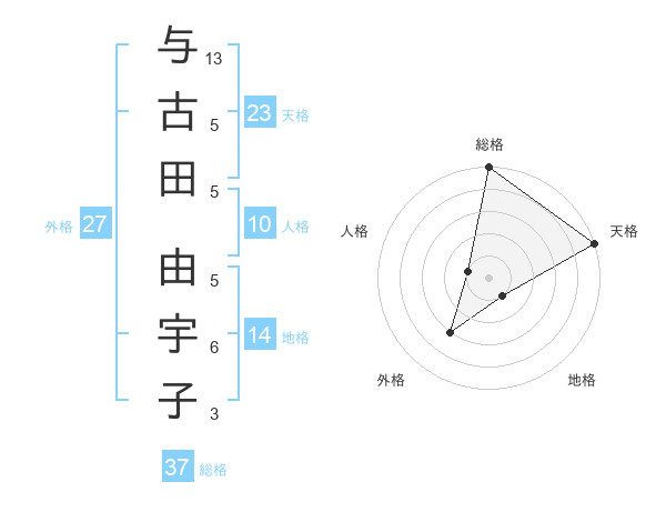 与古田 由宇子さんを姓名の画数から五運を鑑定