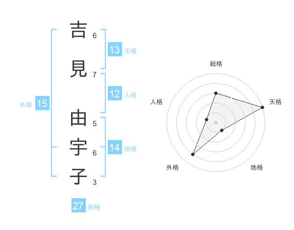 吉見 由宇子さんの天格は13画の5点!