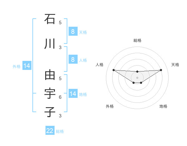 石川 由宇子さんの総格は22画の1点