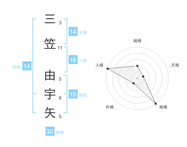 三笠 由宇矢さんを姓名の画数から五運を鑑定