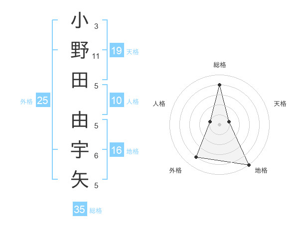 小野田 由宇矢さんを姓名の画数から五運を鑑定