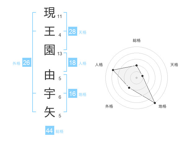 現王園 由宇矢さんを姓名の画数から五運を鑑定
