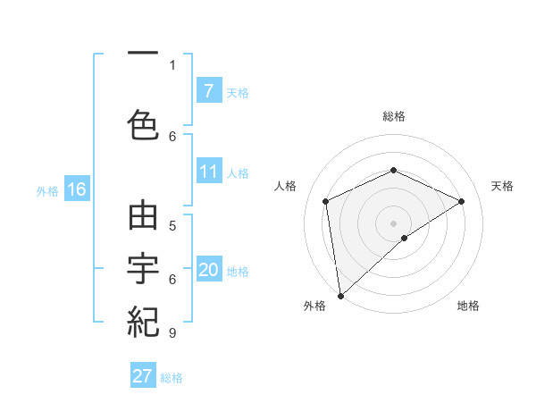 一色 由宇紀さんを姓名の画数から五運を鑑定