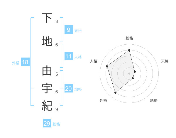 下地 由宇紀さんを姓名の画数から五運を鑑定