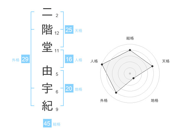 二階堂 由宇紀さんを姓名の画数から五運を鑑定