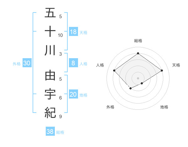五十川 由宇紀さんの総格は38画の4点!