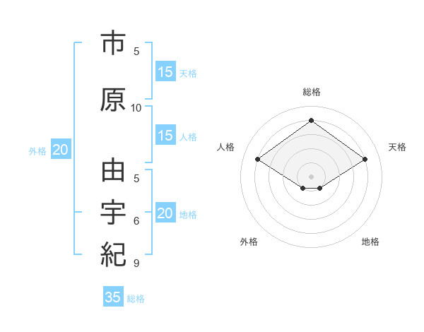 市原 由宇紀さんの天格は15画の4点!
