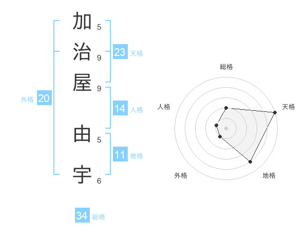 加治屋 由宇さんを姓名の画数から五運を鑑定