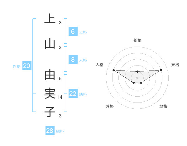 上山 由実子さんの総格は28画の1点!