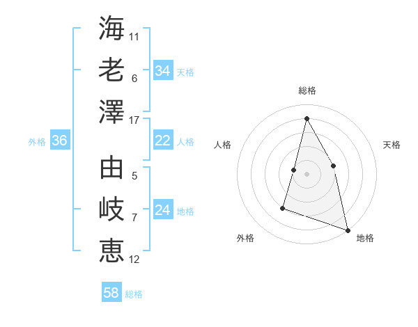 海老澤 由岐恵さんを姓名の画数から五運を鑑定