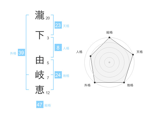 瀧下 由岐恵さんを姓名の画数から五運を鑑定