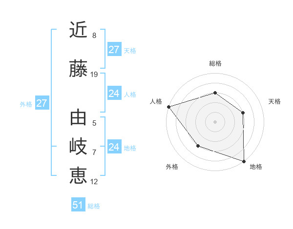 近藤 由岐恵さんの外格は27画の3点!