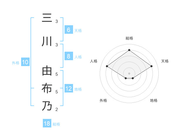 三川 由布乃さんを姓名の画数から五運を鑑定