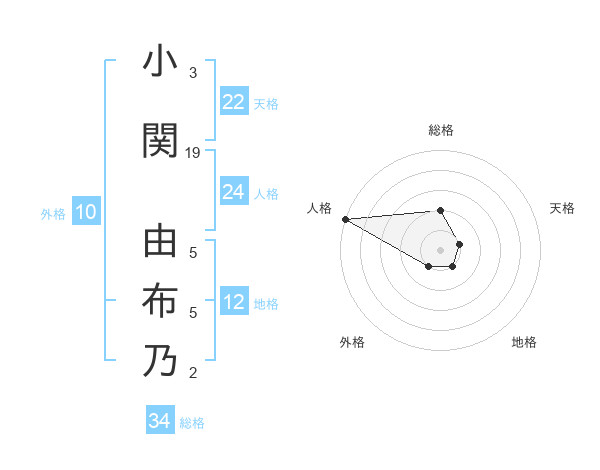 小関 由布乃さんを姓名の画数から五運を鑑定