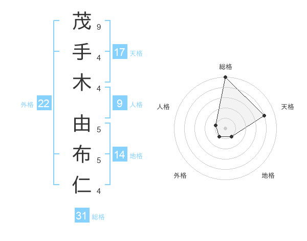 茂手木 由布仁さんの総格は31画の5点!