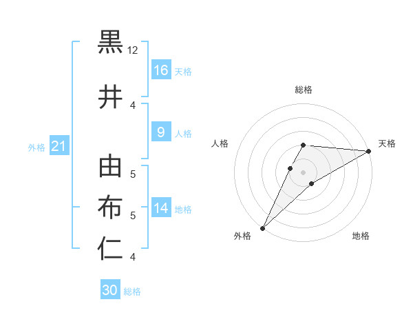 黒井 由布仁さんを姓名の画数から五運を鑑定