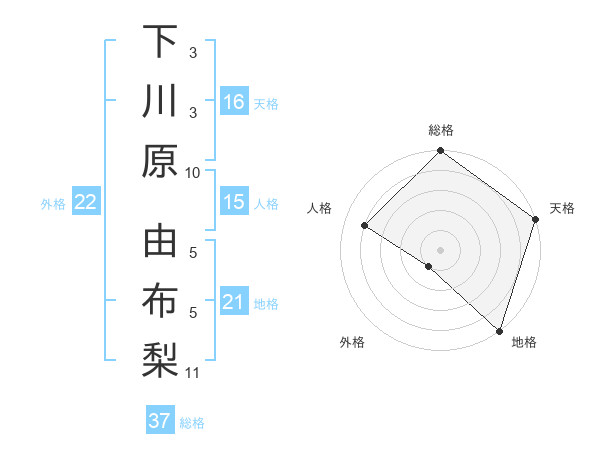 下川原 由布梨さんの地格は21画の5点!
