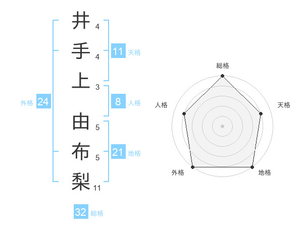 井手上 由布梨さんの総格は32画の5点!