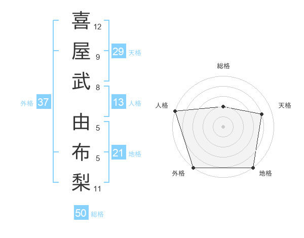 喜屋武 由布梨さんの外格は37画の5点!